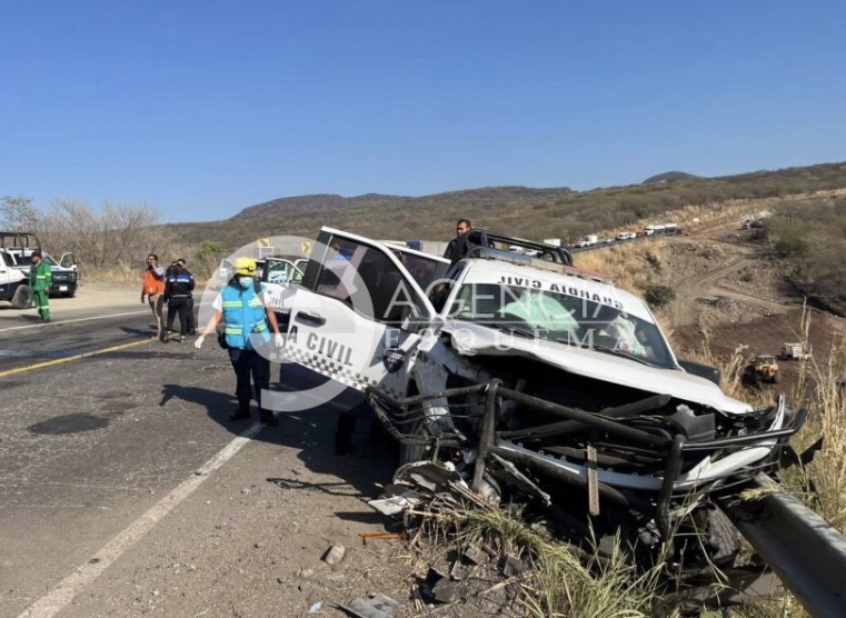 Cinco elementos de la Guardia Civil resultaron lesionados tras el choque frontal de una patrulla y una camioneta particular sobre la autopista Siglo XXI, la mañana de este lunes.