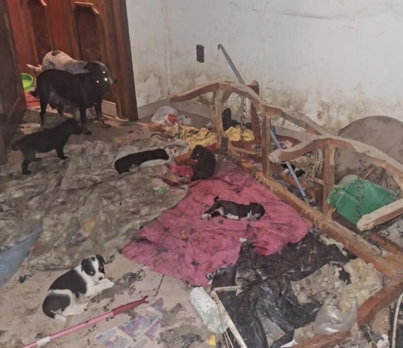 Al ejecutar la diligencia, el personal interviniente ingresó al domicilio, donde localizó a los ejemplares hacinados en distintos espacios, sin condiciones mínimas de higiene ni resguardo.