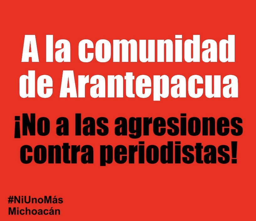 El Colectivo NiUnoMás expresó la noche de este lunes su rechazo a las agresiones contra comunicadores que cubrían la manifestación violenta de comuneros de Arantepacua por diversos puntos de Morelia.