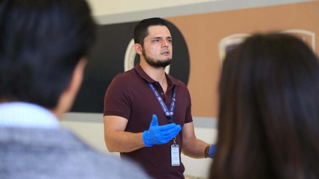Posteriormente, las y los asistentes ingresaron al Servicio Médico Forense, donde se expusieron los procedimientos técnicos que se desarrollan en apego a la normatividad vigente, así como la relevancia de esta área en la investigación de delitos.