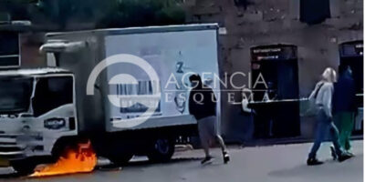 Pseudo normalistas prenden fuego a camioneta en pleno Centro de Morelia