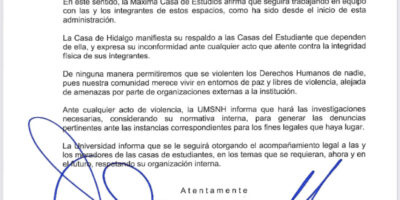 Condena UMSNH agresiones contra moradores de albergues estudiantiles