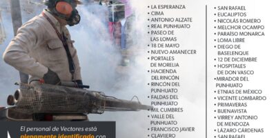 Desde este lunes, tareas de fumigación contra dengue en Morelia; inicia en 39 colonias