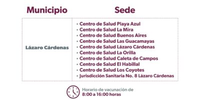 Del 29 al 30 de diciembre vacunará Lázaro Cárdenas a rezagados con Abdala