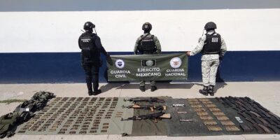 En operativo interinstitucional, se aseguraron tres fusiles, más de mil cartuchos, cargadores y equipo táctico