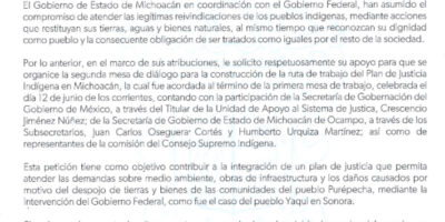 Bedolla solicita a Segob trabajar Plan de Justicia Indígena para Michoacán