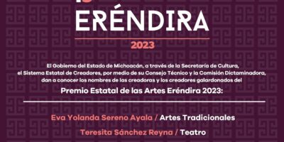 Felicita UMSNH a Yolanda Sereno y a Alfonso Villanueva, ganadores del Premio Estatal de las Artes Eréndira 2023