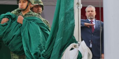 Encabeza gobernador Bedolla acto por Día de la Bandera
