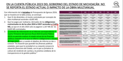 Opacidad sobre recursos destinados a obras multianuales en Michoacán: Cemide