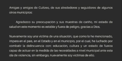 Estoy fuera de peligro, afirma presidenta de Cuitzeo y pide evitar caer en informaciones falsas