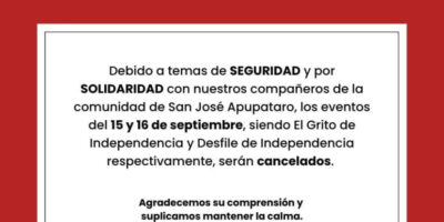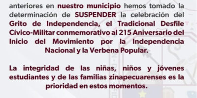 Zinapécuaro no corre riesgos y decide suspender “Grito”, desfile y verbena popular