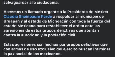 Muere policía de Uruapan en ataque armado de parte de delincuentes en retén